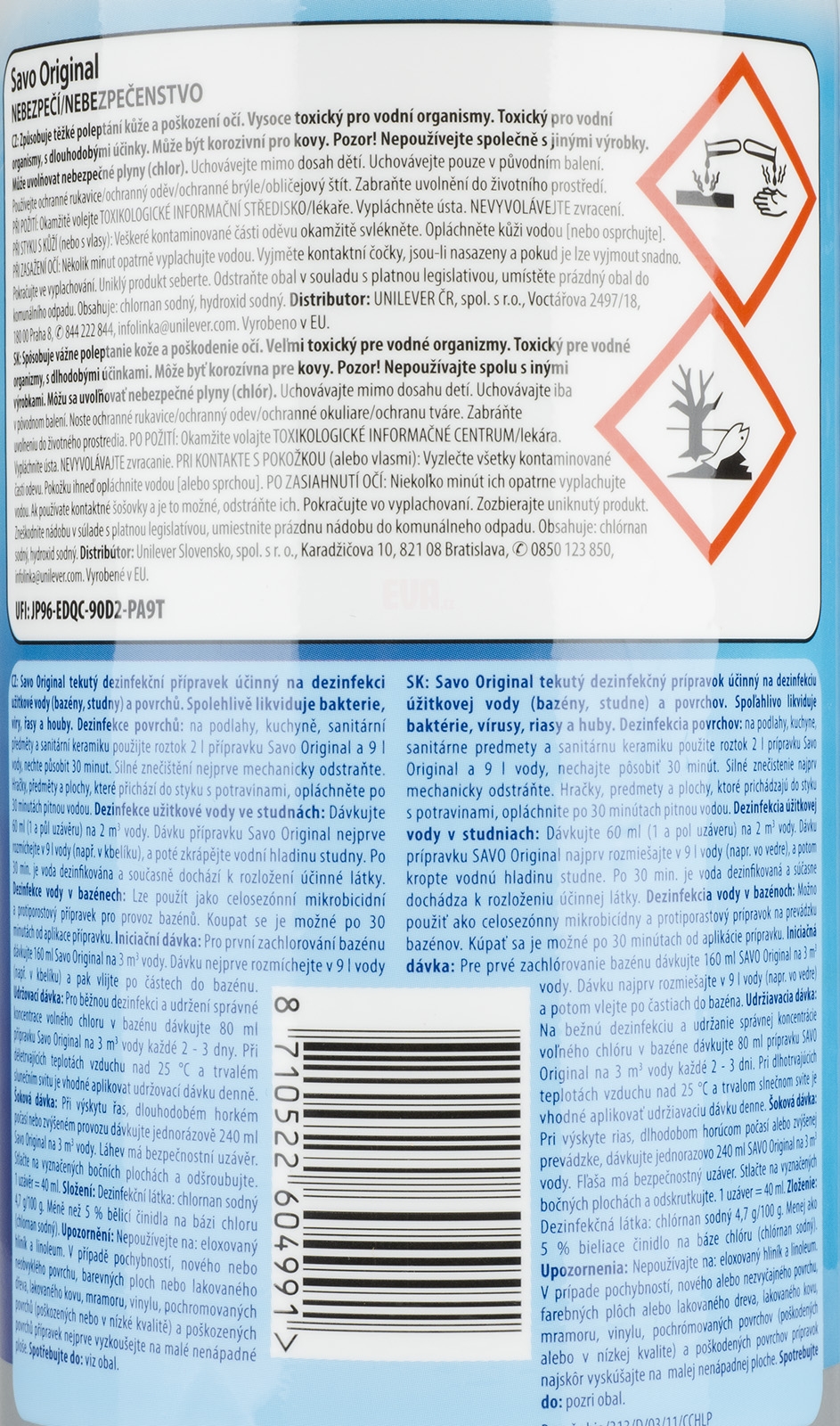 Nebezpečné složky: chlornan sodný, roztok, obsah aktivního chloru 95% hydroxid sodný.